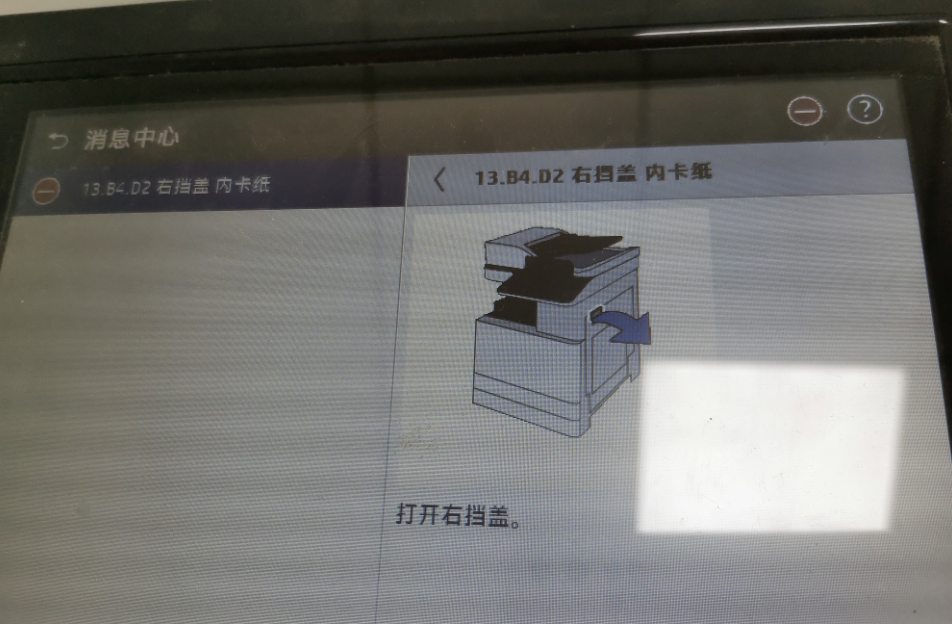 1.打开右盖板,检查进纸区域是否有卡纸。