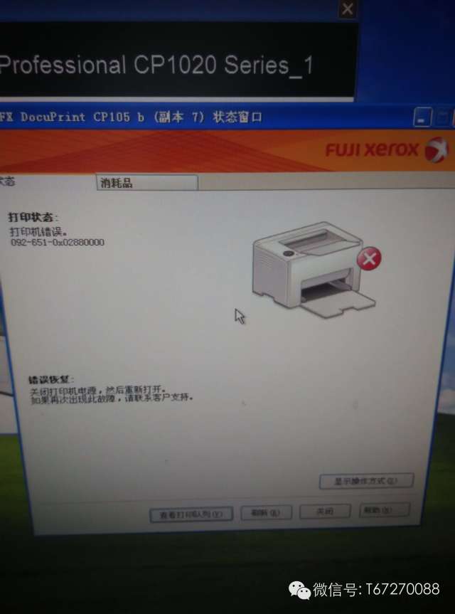 故障案例错误代码:富士施乐CP105B/CM205B 彩色led打印机报错092-651-0x02880000 2015年5月25日 ?