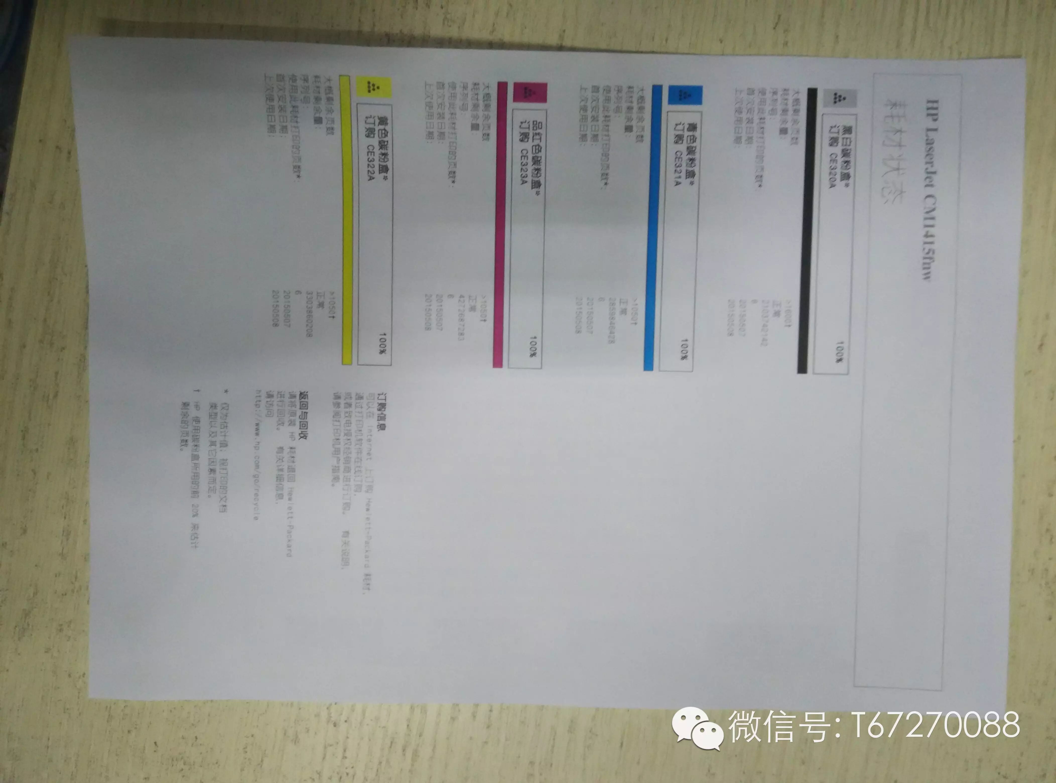 故障案例:惠普HP1415彩色激光打印机 打印机打印一边颜色浅淡 2015年5月11日 附图