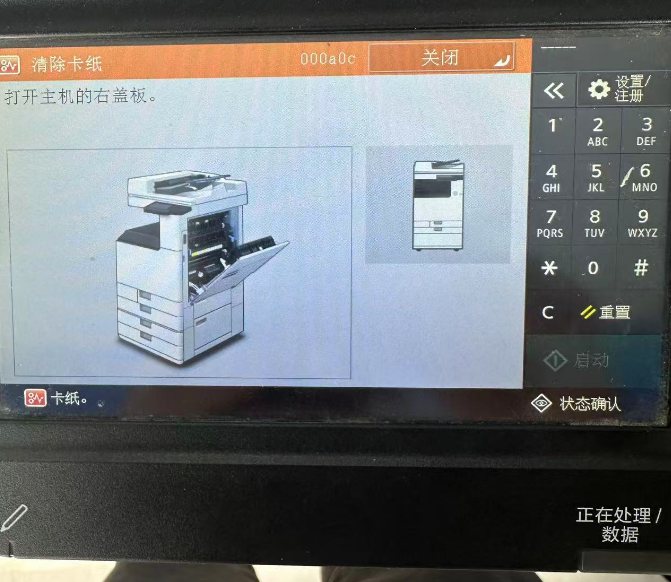 故障案例:佳能c3226彩色复印机报错 清除卡纸000a0c 打开主机的右盖板 代码 | 广东揭阳八巡OooBXooO | 二〇二五年九月十八日